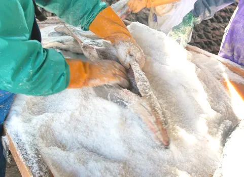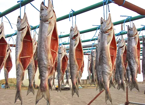 山漬造りの始まりは、長期保存をするために漁師達が考えた製法です。さけ自体が持つ余分な水分をほとんど除くため塩味は大変強くなっておりますが、身のしまりは格別です。